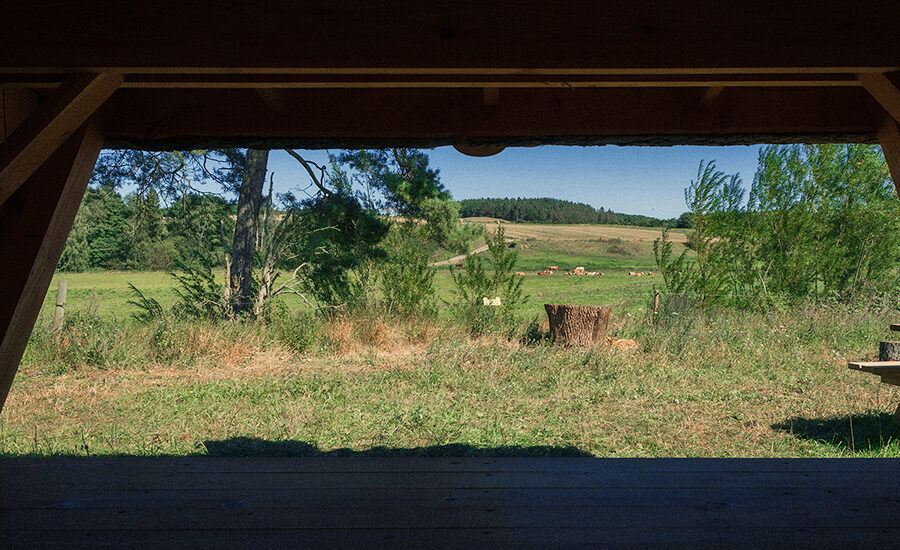Tæt på Arla® ØKO shelteret er der p-plads, og herfra fører marken til shelteret. Fra p-pladsen er der cirka 200 meter sammenlagt gennem et lettere kuperet landskab.