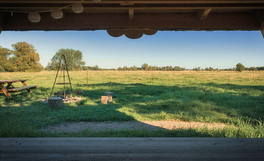 Tæt på Arla® ØKO shelteret er der p-plads, og herfra fører marken til shelteret. Fra p-pladsen er der cirka 30 meter gennem et lettere kuperet landskab.