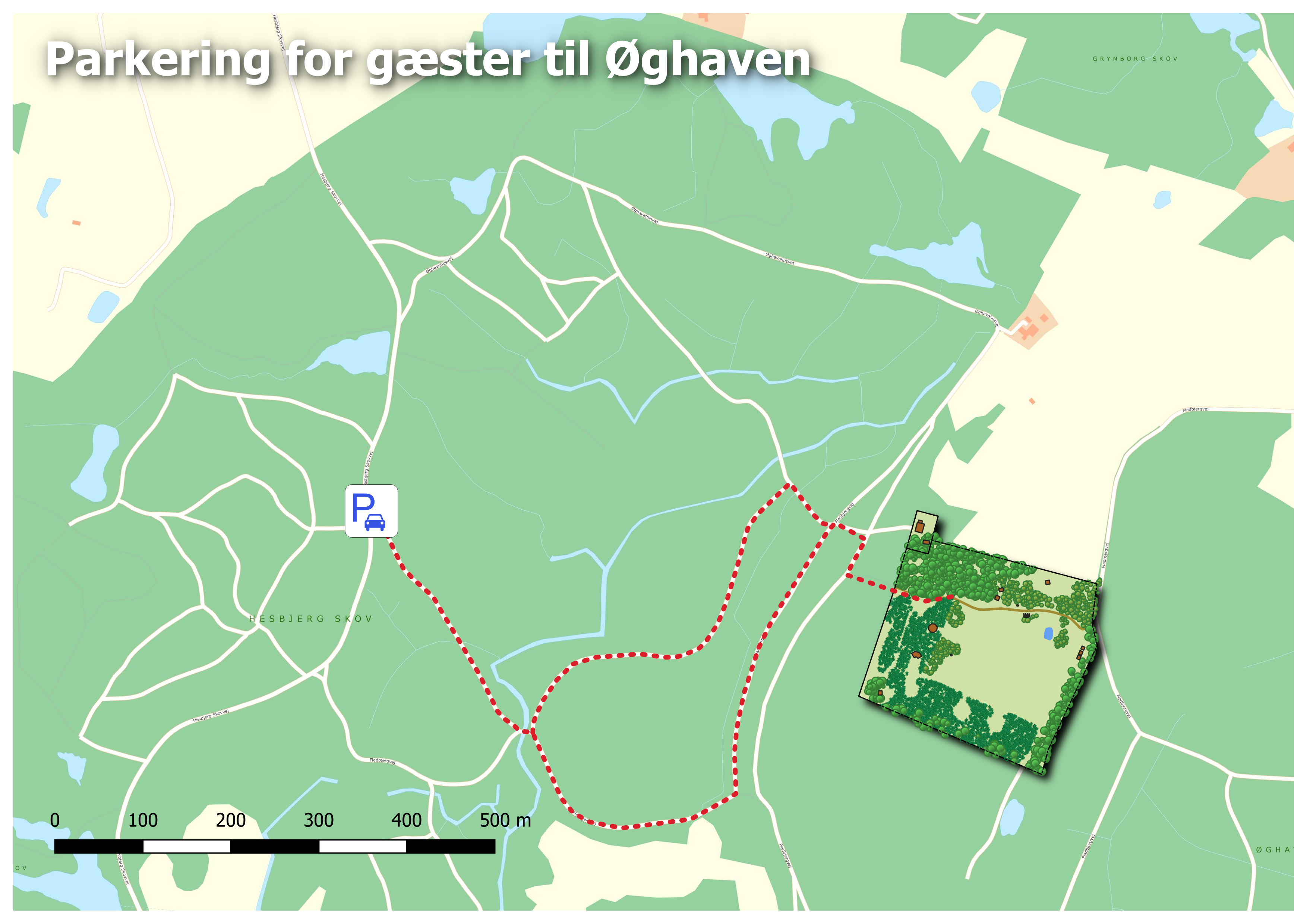 - Kommer du i bil, skal du parkere på Hesbjerg Skovvej – se kortet herover. Du kan også indsætte følgende koordinater: 55.371677,10.220277 i f.eks. google maps.