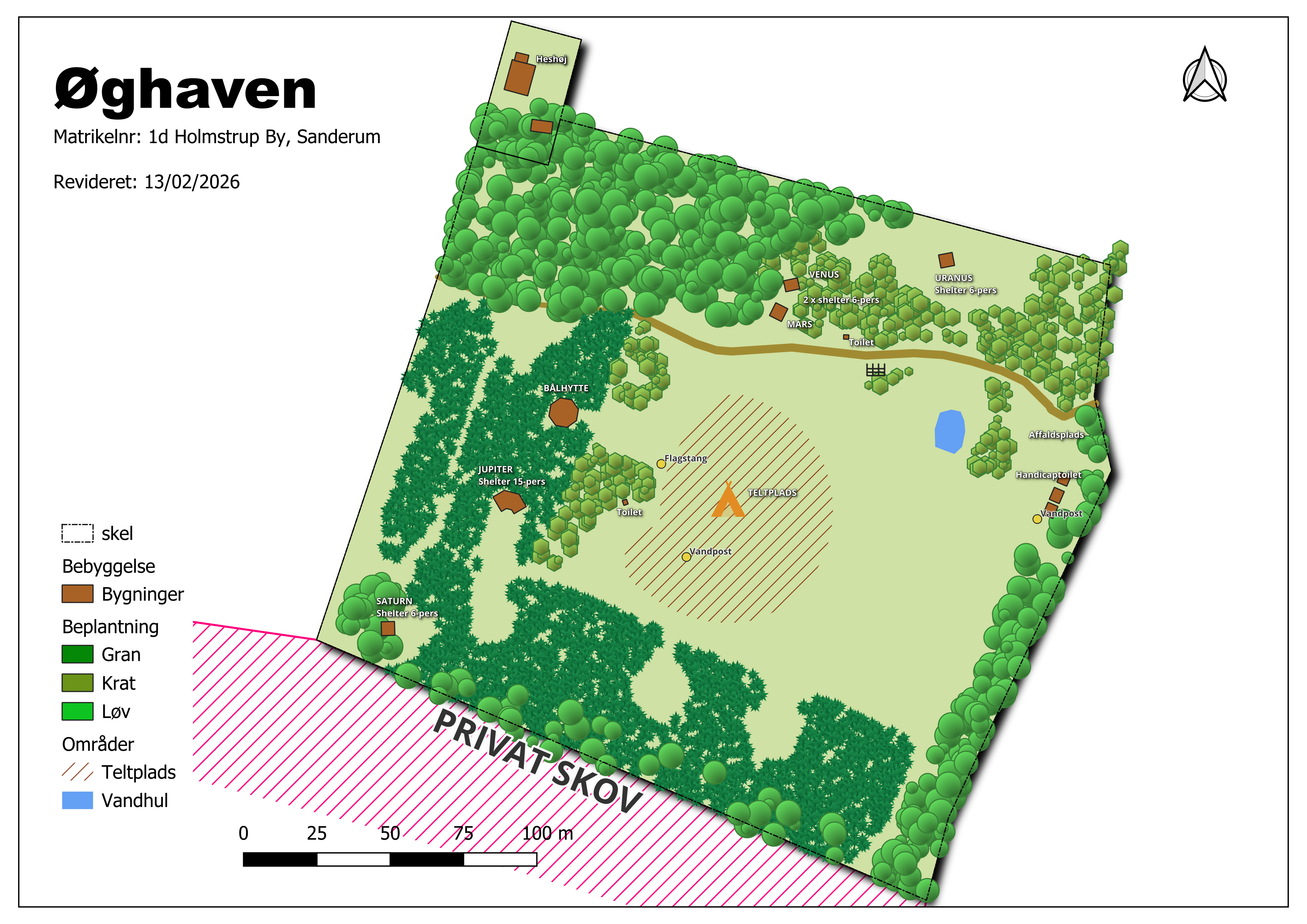 - Bålhytte med borde, bænke og bålsted (ikke til overnatning).