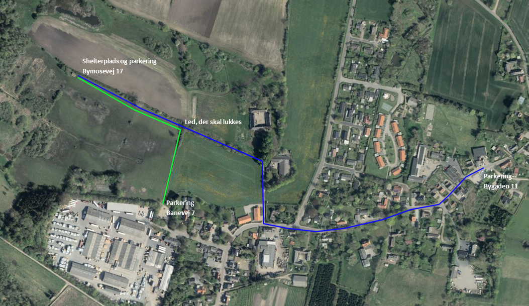 - Alternativ Parkering. Men kan parkere på Stranges Plads over for Min Købmand, Bygaden i Haastrup og gå den sidste kilometer til shelterpladsen og i weekenderne kan man parkere på Banevej 7.