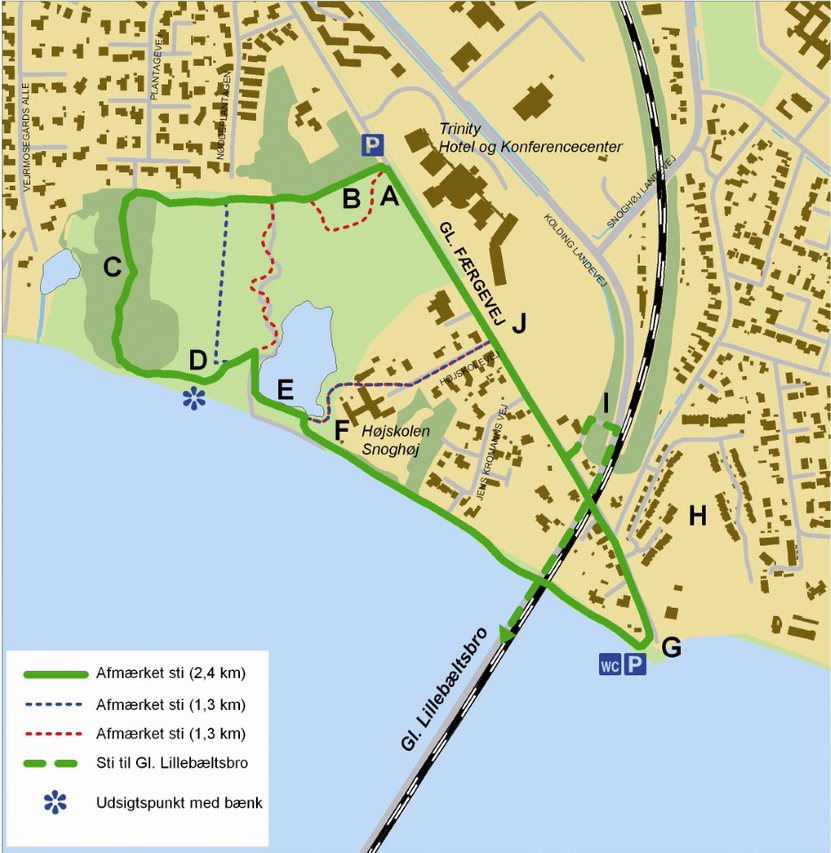 Teksten nedenunder beskriver hvad man kan opleve på sin tur rundt omkring Snoghøjparken.