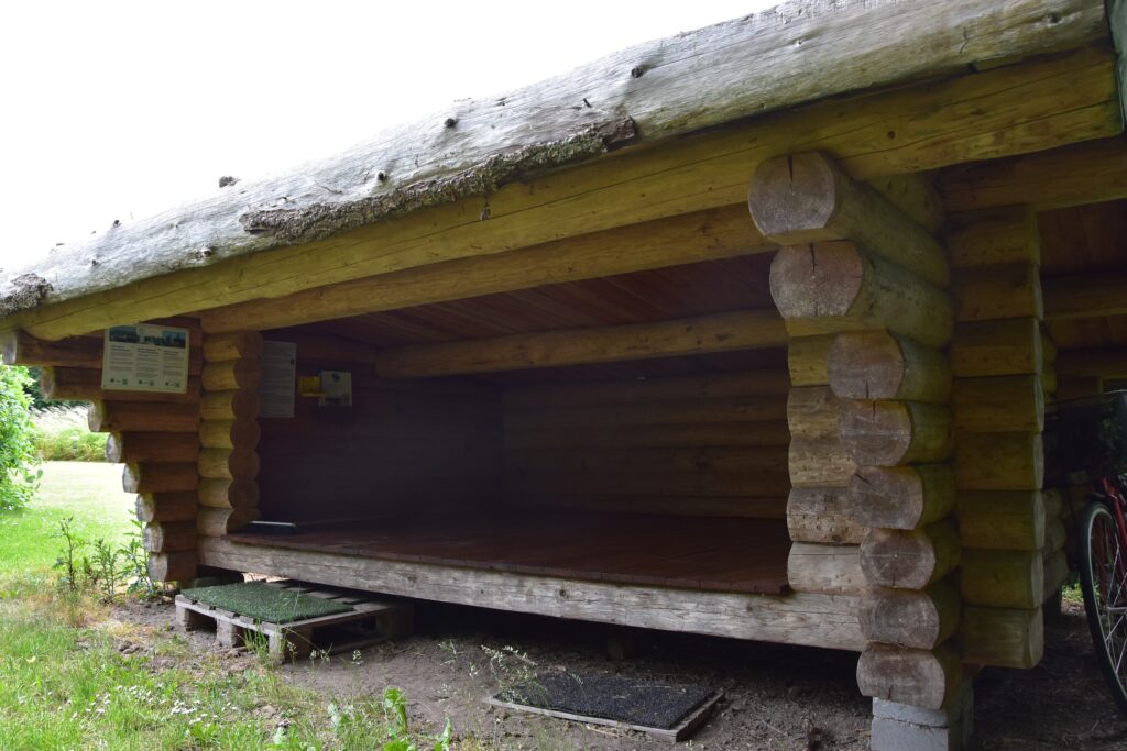 Shelteren “Rødspætten” ligger i hjørnet af det hyggelige grønne område.